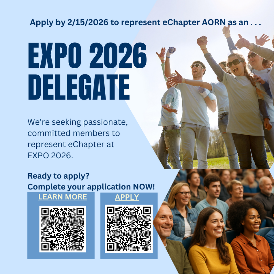 - File a report about their experience as an eChapter Delegate at EXPO 2026 - email report to the eChapter BOD Chair echapteraorn@gmail.com by May 20, 2026.
